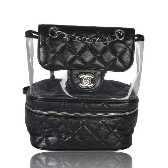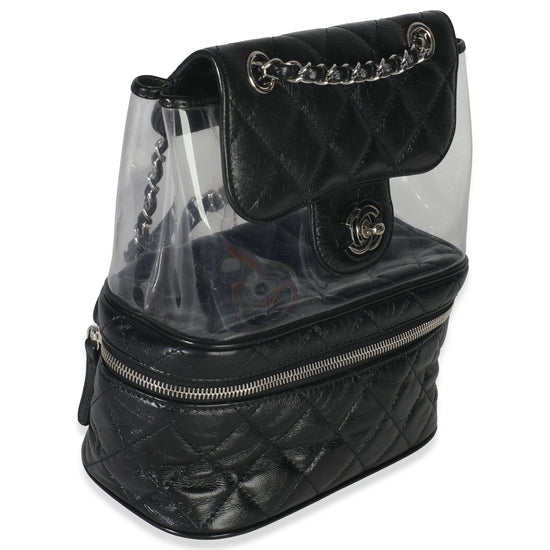 Black Crumpled Calfskin PVC Mini Backpack