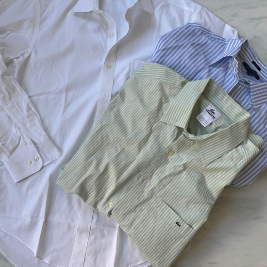 Our curated cotton button up style box is filled with 3 clean and crisp button ups to keep in rotation all spring. This chic, classic-focused capsule is perfect for your sustainable capsule wardrobe.