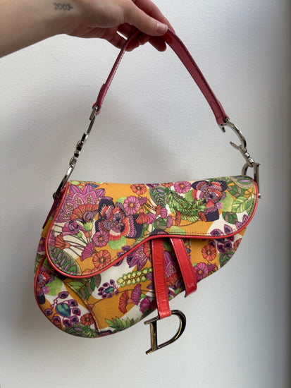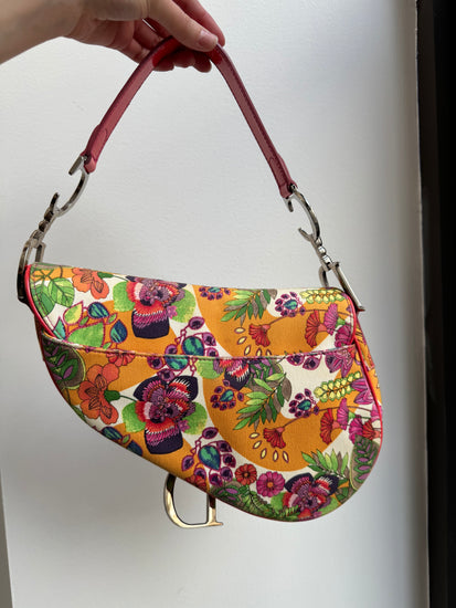 Vintage Dior 2004 Multicolor Floral Glamour Saddle Bag