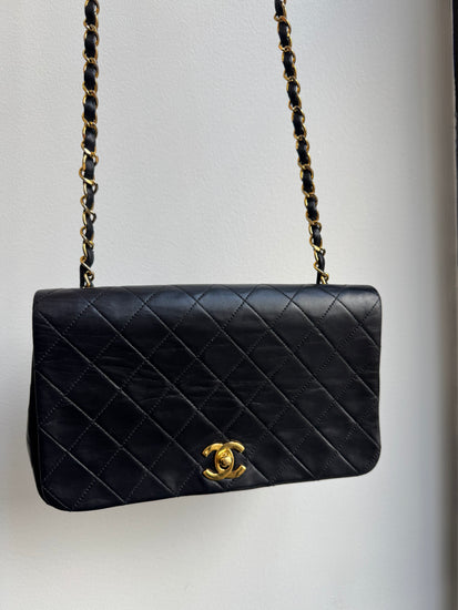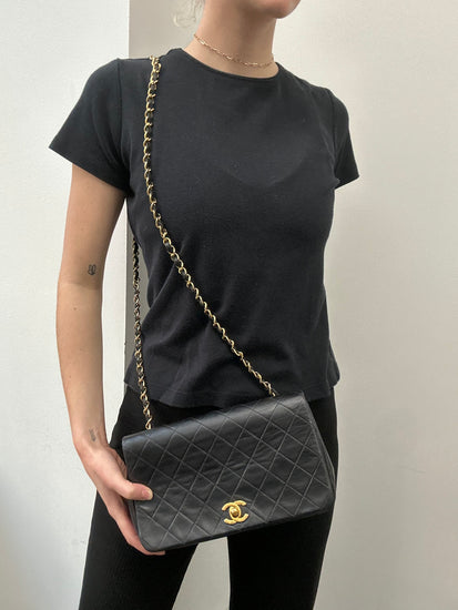 Vintage Chanel 1991 Classic Black Quilted Lambskin Flap Bag