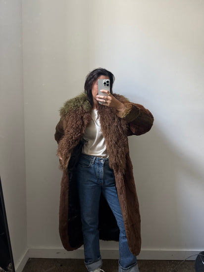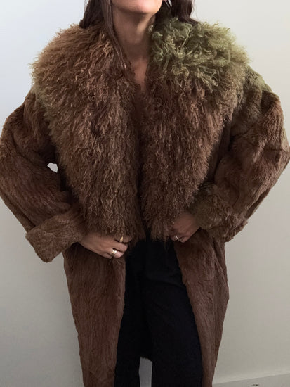 VINTAGE BEAVER FUR COAT + MONGOLIAN FUR AT NECK LINE + GREEN ASCENTS LIGHT WEIGHT