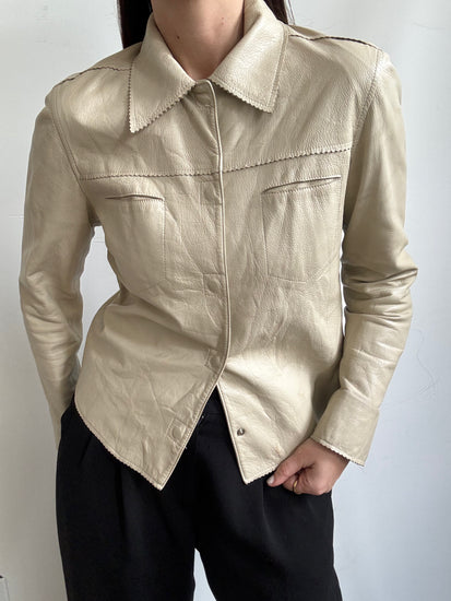 Vintage Beige Fitted Leather Jacket Size Medium
