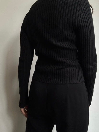 VINTAGE BLACK SUEDE + CROCHET KNIT TOP SIZE SMALL