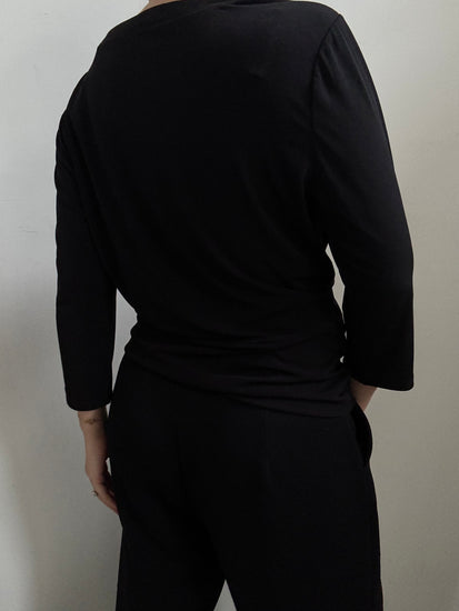 VINTAGE BLACK WRAP STYLE BLOUSE