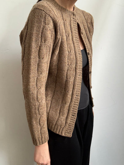 Vintage Brown Wool Cable Knit Cardigan Size Small