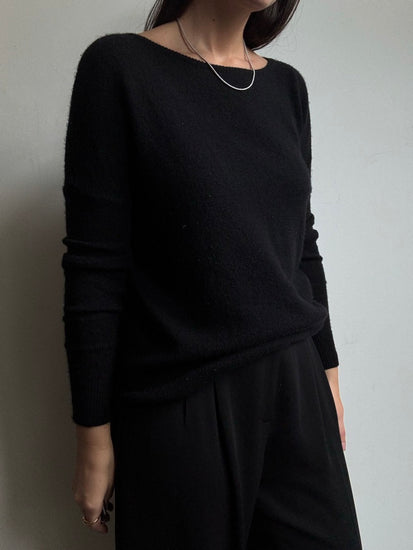Vintage Classic Black Wool & Cashmere Boatneck Sweater Size Small