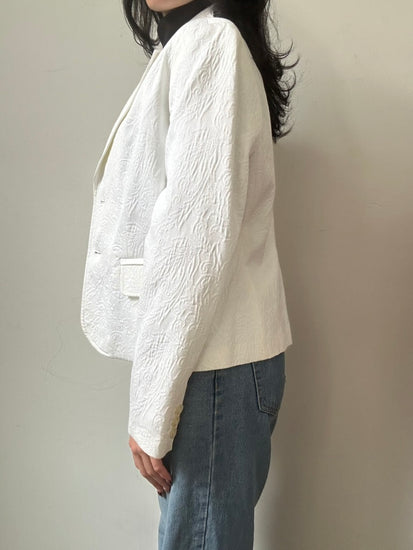 Vintage Jacquard Floral White Fitted Blazer Size Large
