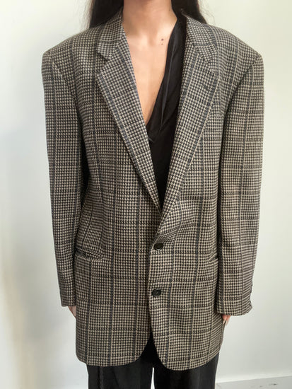 VINTAGE CREAM AND BLUE PLAID BLAZER