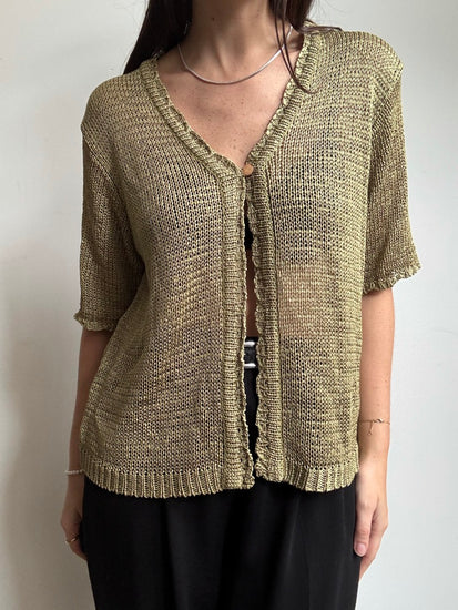VINTAGE GREEN KNITTED HALF SLEEVE CARDIGAN