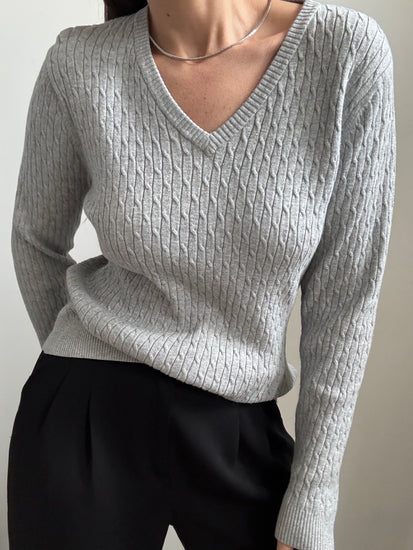 VINTAGE GREY CABLE KNIT SWEATER