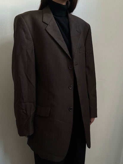 Vintage Italian Chocolate Brown Wool Blazer Size Large