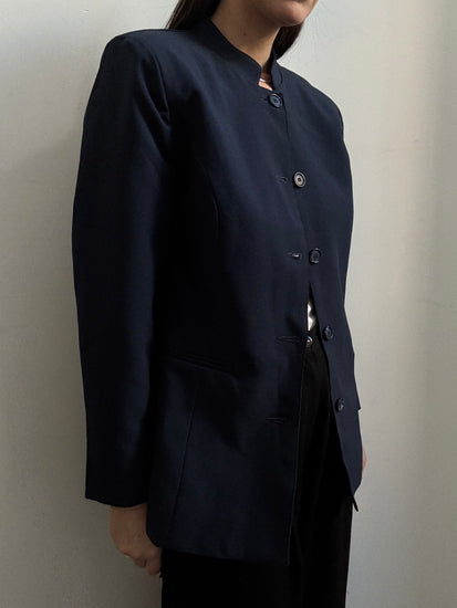 VINTAGE NAVY STAND COLLAR FITTED BLAZER