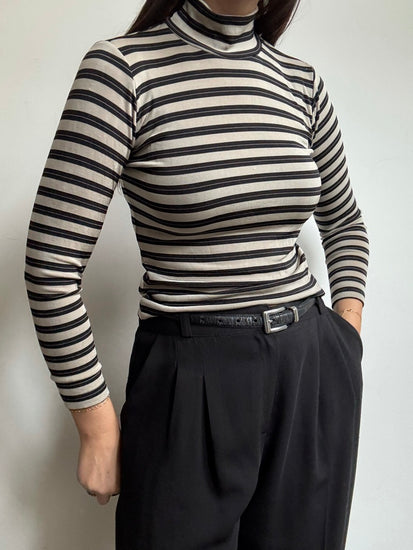 VINTAGE BLACK + CREAM STRIPED TURTLE NECK