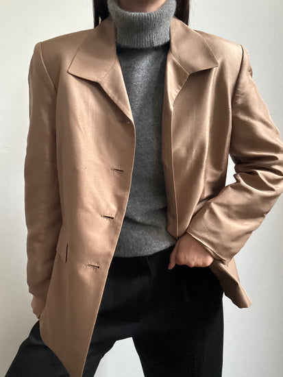 VINTAGE PURE SILK LIGHT BROWN BLAZER