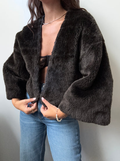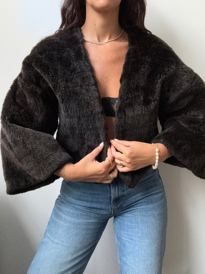VINTAGE FAUX FUR CHOCOLATE BROWN JACKET