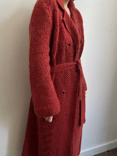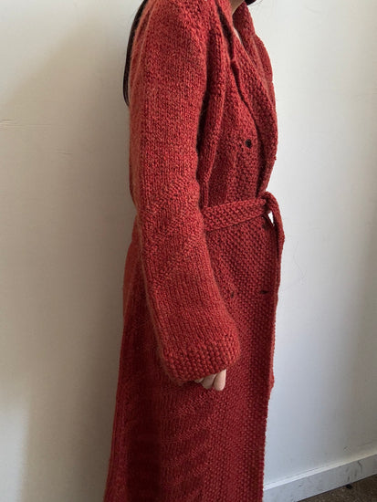 Vintage Rust Double Breasted Belted Long Cardigan Size Medium