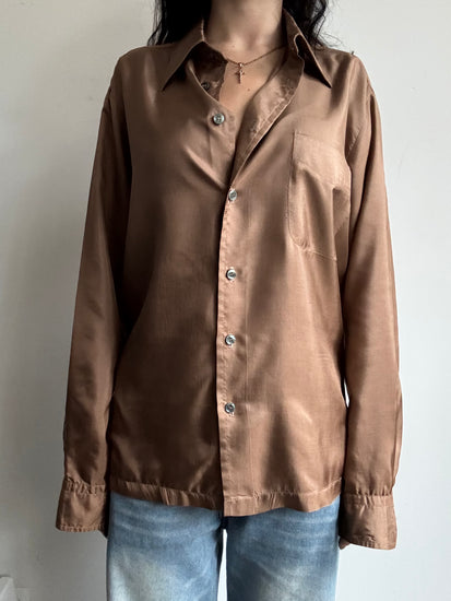 VINTAGE SATIN LONG-SLEEVE BROWN BUTTON DOWN