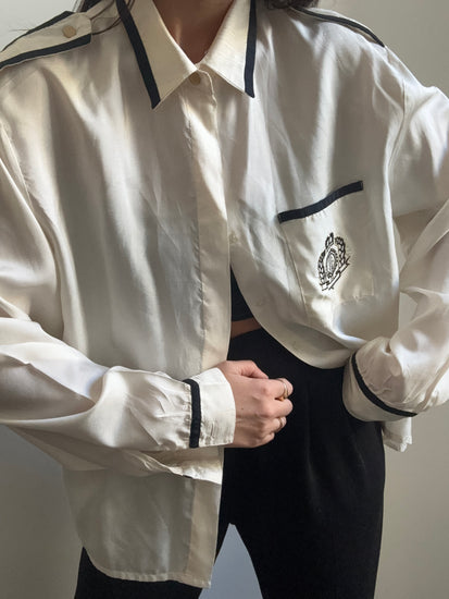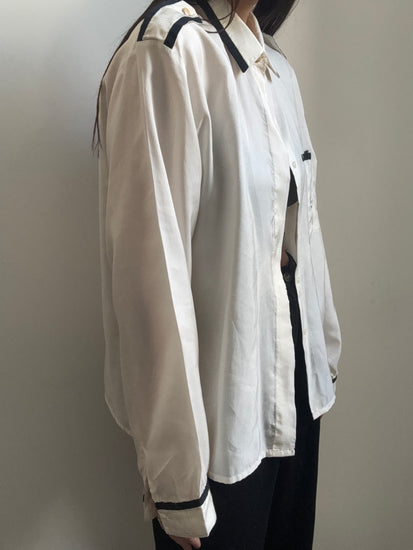 Vintage Silky Contrast Black + White Button Top Size M