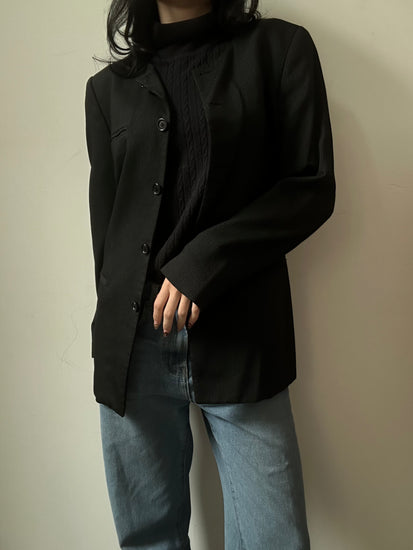 Vintage Striped Collarless Black Wool Blazer Size Small