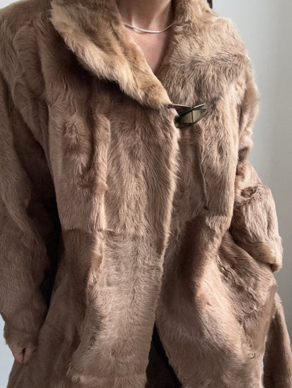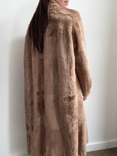 Vintage Tan Shearling Long Coat Size Medium
