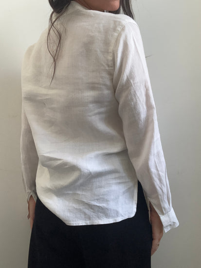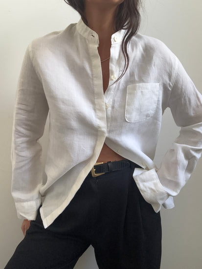 VINTAGE WHITE COLLARLESS BUTTON-UP