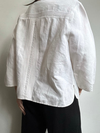 Vintage White Wide Sleeve Blouse + Lace Trim Size Large