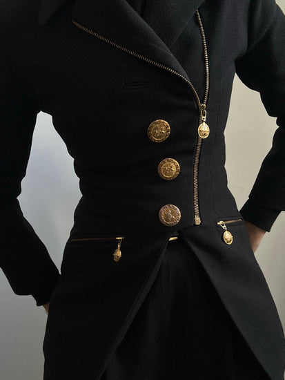 VINTAGE VERIGO PARIS BLACK ZIPPED JACKET WITH GOLD-TONED ORNATE HARDWARE