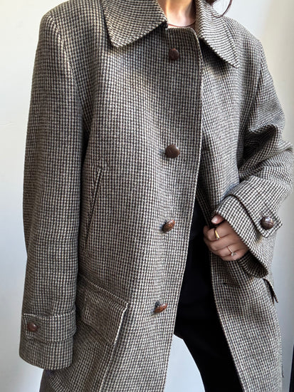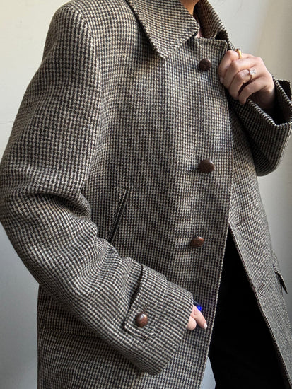 VINTAGE WOOL BROWN + GREEN CHECKED COAT