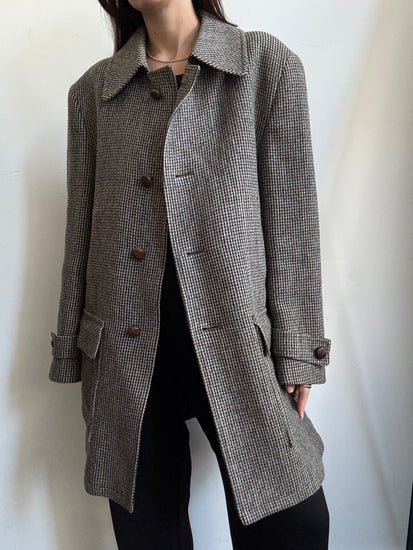 Vintage Wool Brown + Green Checked Mid-Length Coat Size Large